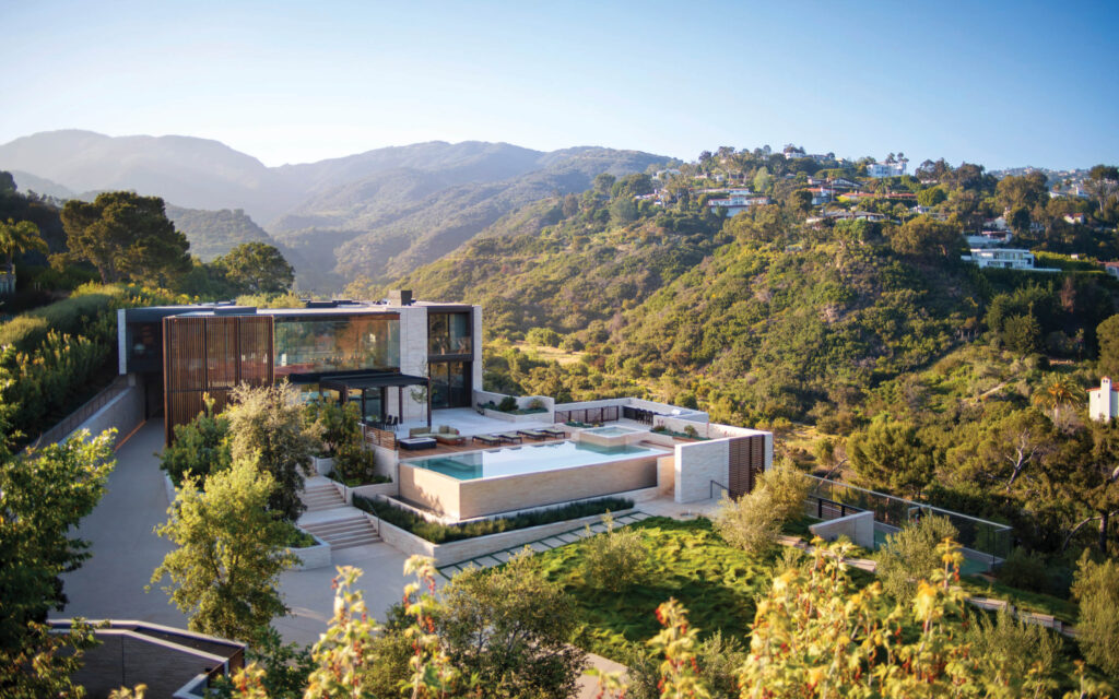 The house features state-of-the-art electronic home control for lighting, HVAC, security, and fire protection. Stone materials were directly sourced from Italian quarries, and include complex, curved stone staircases cut from blocks.