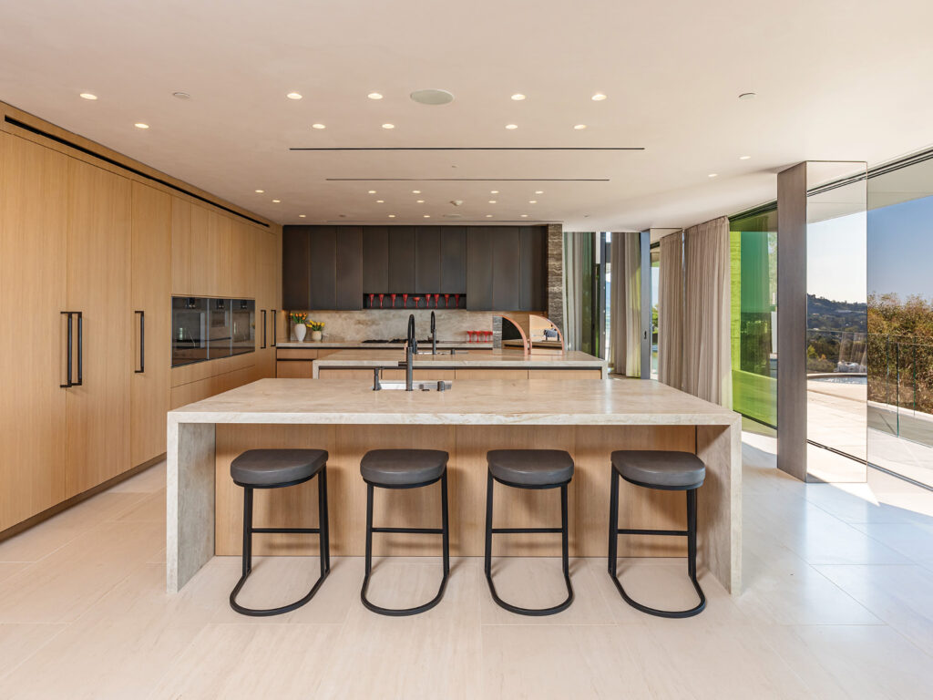 A renowned hillside estate, this modern architectural gem offers stunning views that stretch from the city to the coast. An unexpected rainy season in this city’s generally dry climate was just one of the many challenges our project management team overcame to bring the client’s vision to life.