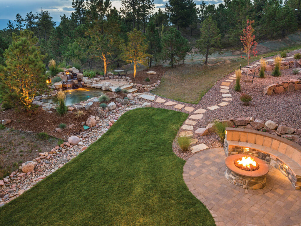 Multiple stone fireplaces and seating areas facing the water denote the 6,000 SF building as the crux of the family campus. The central gathering area, built in the initial phase of construction, contains communal dining and kitchen, media theater, fitness center, a yoga studio, and spa facilities. The project also encompassed construction of children’s play structures, a new granite and boulder lined swimming pool integrated into the landscape, extensive landscaping including the installation of over 500 trees up to 50 feet in height, and integration of natural streams and waterfalls creating an intensely natural wooded retreat.